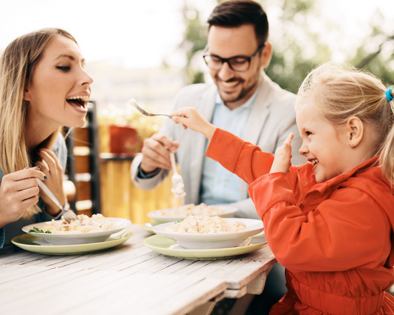 Na jídlo choďte alespoň ve dvou. Jeden může jíst a druhý se mezitím bude věnovat dětem.