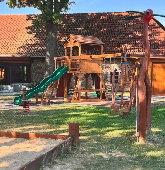 Dětský koutek je fajn, ale dětské hřiště na zahradě je lepší. Hřiště je krásné dřevěné a navíc jsou jeho součástí tunely vybudované ve svahu, ze kterých budete děti jen těžko dostávat. Na druhou stranu u venkovního výčepu vám nic chybět nebude.