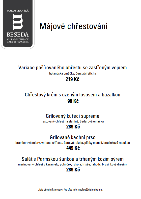 V květnu vás v Malostranské besedě čeká speciální nabídka plná čerstvých surovin a výrazných chutí. Přijďte ochutnat pokrmy, které spojují tradiční recepty s moderním pojetím, od jarních vývarů přes grilované maso až po sezónní saláty.