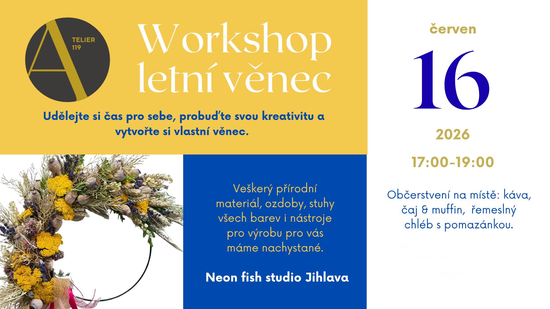 Přivítejte jaro v příjemné atmosféře tradičního jarního ateliéru. Čekají vás originální výrobky klientů místních služeb, ruční tvorba a možnost zastavit se, potkat známé tváře a podpořit smysluplnou práci. Akce je otevřená všem, kdo mají rádi poctivé řemeslo a komunitní setkávání.