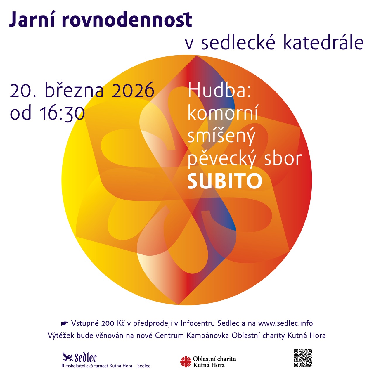 Těšte se na 14. ročník tradiční Jarní rovnodennosti v sedlecké katedrále, kde vystoupí pražský smíšený komorní sbor SUBITO. Uslyšíte sborovou hudbu 20. století a skladby současných českých i zahraničních autorů, pečlivě vybraných pro specifickou akustiku gotického chrámu. Výtěžek ze vstupného bude věnován na opravu Kampanovy vily a podporu rané péče pro rodiny s dětmi.