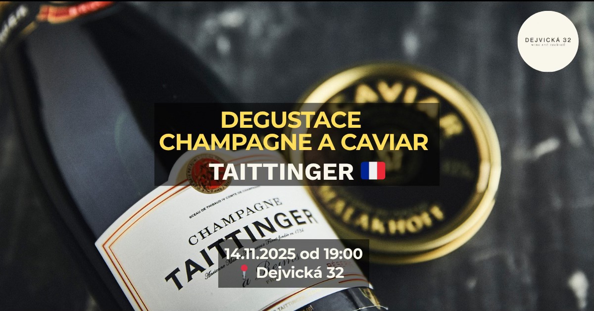 Večer v prostorách wine & cocktail baru Dejvická 32 nabídne jedinečný zážitek spojený s francouzským šarmem a vytříbeným chutím. Hosté budou mít příležitost pod vedením zkušené someliérky ochutnat šest mimořádných šampaňských značky Taittinger, včetně exkluzivních ročníků a vzácných lahví, které se běžně neobjevují mimo privátní sbírky. Degustaci doplní výběr prvotřídního kaviáru, sýrů a delikates, což slibuje harmonický večer pro skutečné znalce. Vzhledem k omezené kapacitě je nutná rezervace předem.