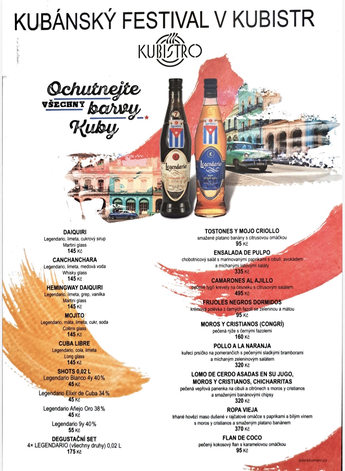 Kubistro přináší od 24. listopadu kubánský týden plný autentických chutí a exotické atmosféry. Návštěvníci se mohou těšit na tradiční pokrmy inspirované kubánskou kuchyní a originální drinky připravené barmanem Viktorem. Příjemné prostředí podniku se na několik dní promění v prostor prosluněný latinskoamerickou energií a rytmem – ideální příležitost zažít Kubu přímo v srdci Prahy.