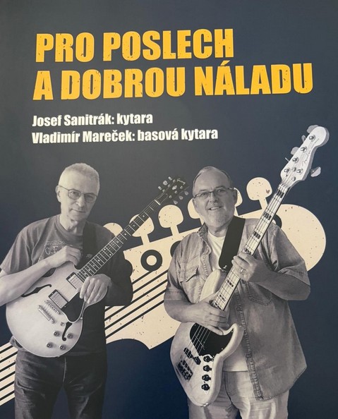 Přijďte si užít pohodový večer s živou hudbou do Excelsior Pubu. O příjemnou atmosféru se postarají kytarista Josef Sanitrák a basový kytarista Vladimír Mareček, jejichž hudba potěší a zklidní.