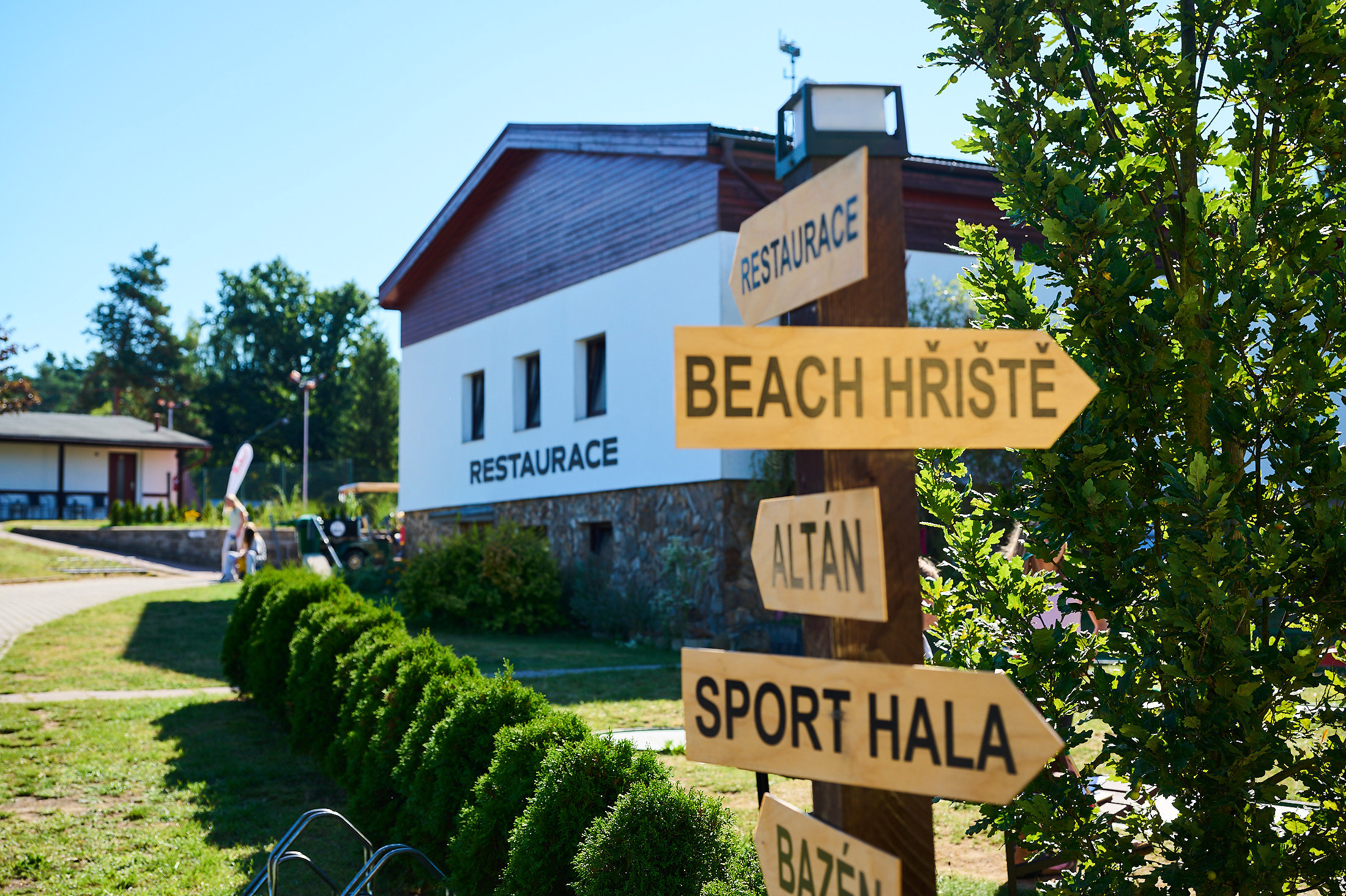 Nádherné prostory a přilehlý park nabízí mnoho možností aktivního vyžití. Beach kurty, beach fotbal, disk golf, 4 bowlingové dráhy či půjčovna in-line bruslí. Vynikající kuchyně, profesionální servis a pivo uvařené přímo tady.
