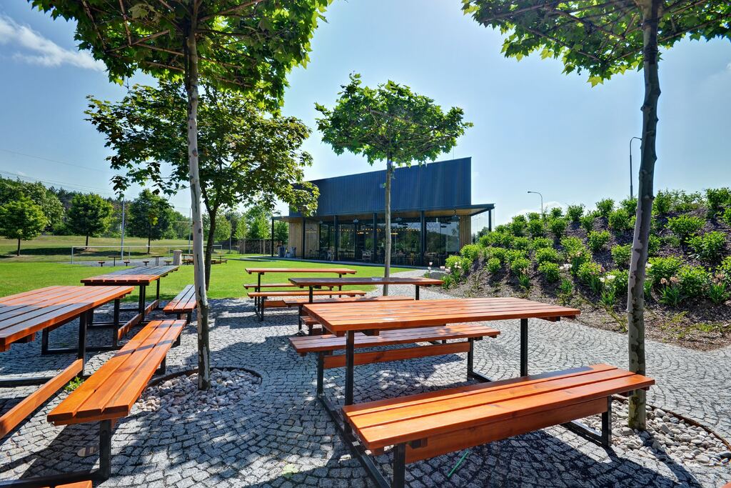 Kapacita: 3 zahrádky s kapacitou až 150 míst
