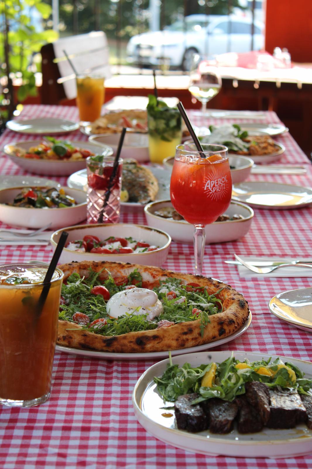 Nápoje: koktejlová karta (Aperol Spritz, Mojito, Piña Colada, Long Island, Moscow Mule, Margarita aj.), vína a prosecco, česká i zahraniční lahvová vína, káva a domácí limonády