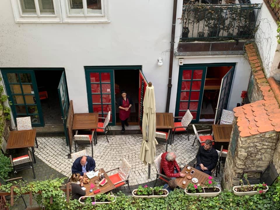 Zajímavost: jedna zahrádka před podnikem a druhá ve vnitrobloku