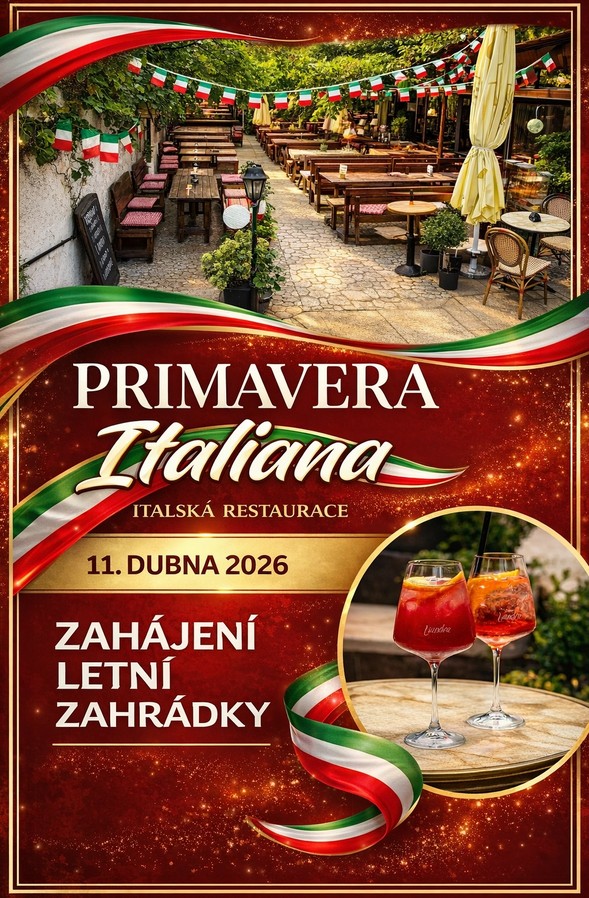 Zajímavost: zahájení letní sezóny s akcí Primavera Italiana 11. dubna 2026, živá hudba, DJ hraje italské hity po celý den, možnost zazpívat si nebo zatančit, jedinečná atmosféra připomínající jih Itálie