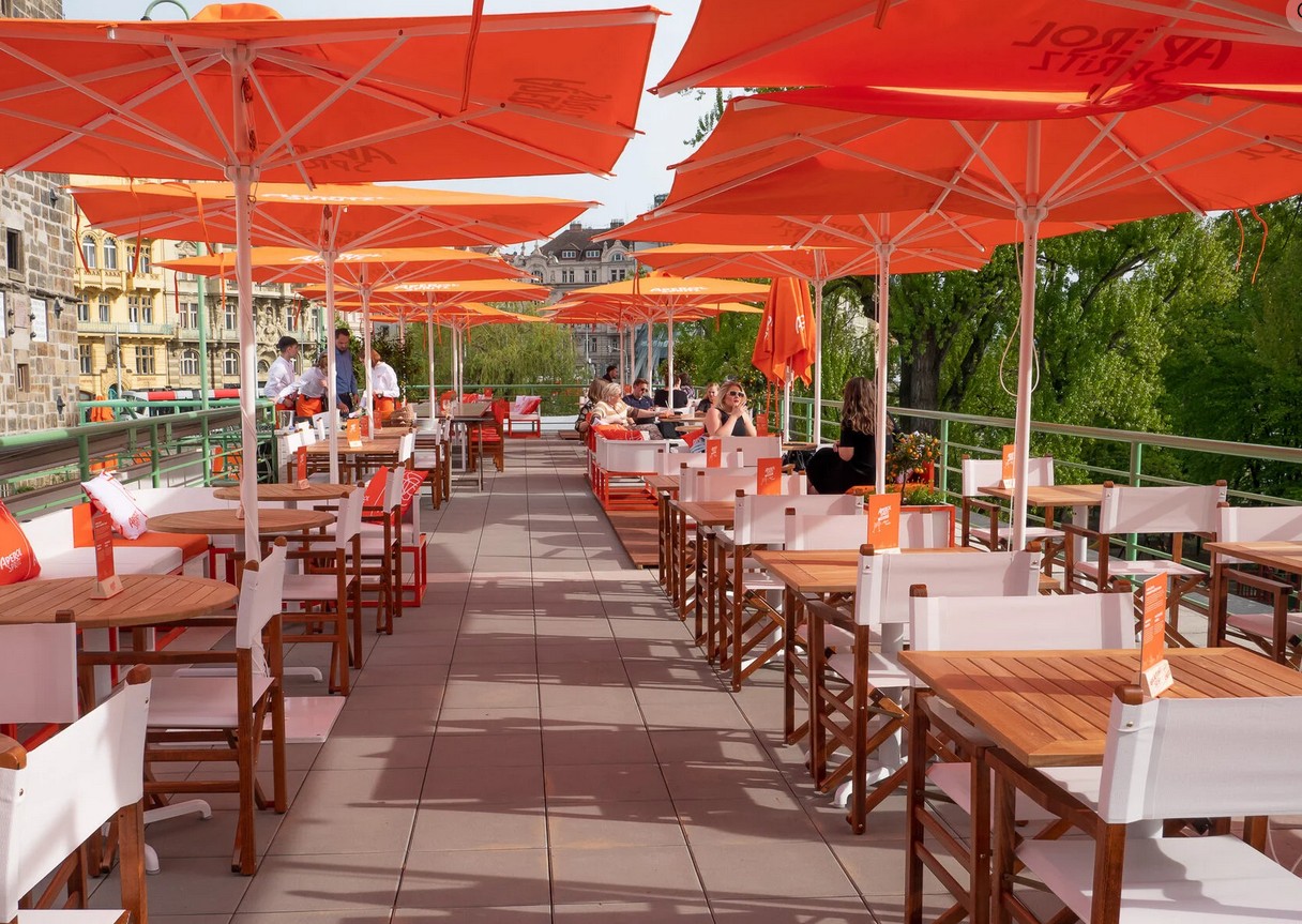 Zajímavost: velká terasa s výhledem na Vltavu, Karlův most a Pražský hrad, otevřeno každý den, o víkendech DJ’s, ideální pro relaxaci s přáteli, rodinou nebo partnerem