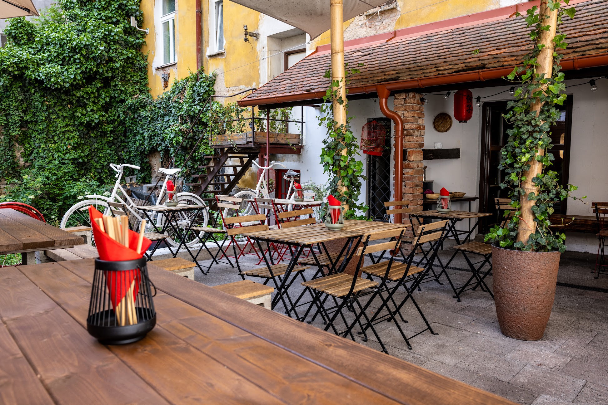 Podrobnosti: vylepšená zahrádka ukrytá ve vnitrobloku s příjemnou atmosférou, nově uspokojí zahrádka i větší skupiny díky dvěma velkým stolům, kde se pohodlně usadí 12 osob, zahrádka je nově navíc zelenější díky bambusům nebo třeba japonským javorům. Jednoduše kouzelná! Otevřeno od úterý do soboty.