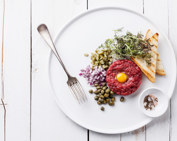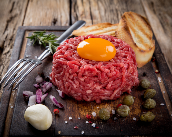 A teď už k receptům. Klasickou verze připravujeme z co možná nejkvalitnějšího hovězího masa, nejlépe z pravé svíčkové. Maso naškrábáme nožem, z důvodu časové úspory je ale můžeme i dvakrát rozemlít. Poté z něj vytvoříme bochánek, který umístíme na mělký talíř. Do středu bochánku uděláme důlek, kam vložíme čerstvý vaječný žloutek.