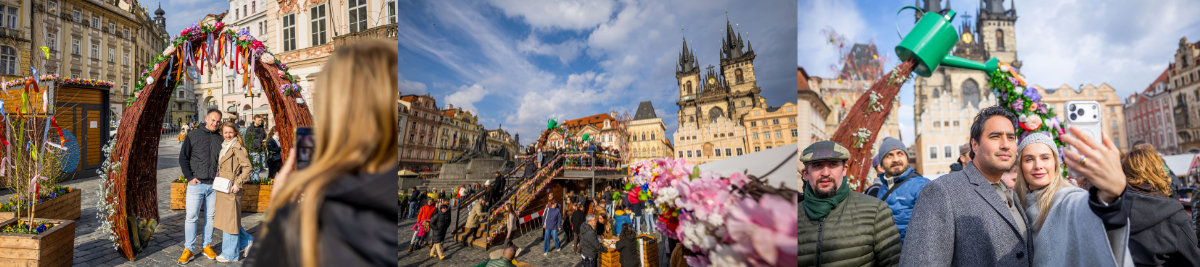 Zapomeňte na klasickou velikonoční červenou a žlutou. Letos hrají prim jemné odstíny fialové, starorůžové a oranžové, které společně s bohatou květinovou výzdobou vytváří úplně jiný zážitek. Dominantou Staroměstského náměstí je opět oblíbený vyhlídkový most – letos symbolicky propojuje zimu s jarem. Na jedné straně holé větve, na druhé rozkvetlá krása. A právě tady vznikají ty nejhezčí fotky.