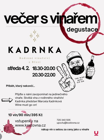 Těšit se můžete na přibližně 9 vzorků vín od českých vinařů, drobné občerstvení a odborný výklad. Degustaci opět povede Vinotéka Vinové z Jihlavy a po skončení bude možné zakoupit vína i s sebou – tentokrát ve větším množství. Kapacita je omezená, nutná je závazná rezervace a platba předem.