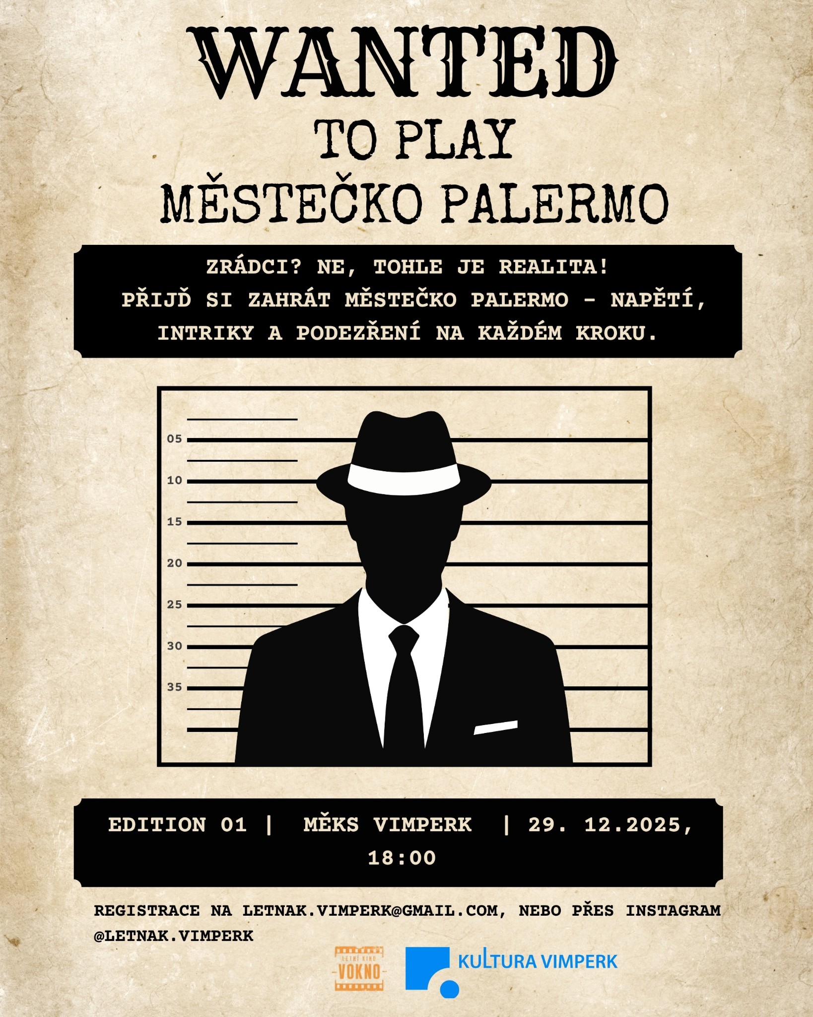 Společenský večer věnovaný oblíbené táborové hře, která inspirovala také televizní pořad Zrádci. Přijďte si zpříjemnit povánoční dny, pobavit se, zapojit se do hry plné napětí a užít si atmosféru, která vtáhne všechny věkové skupiny. Registrace probíhá přes DMs nebo e-mailem, vstupné je dobrovolné.