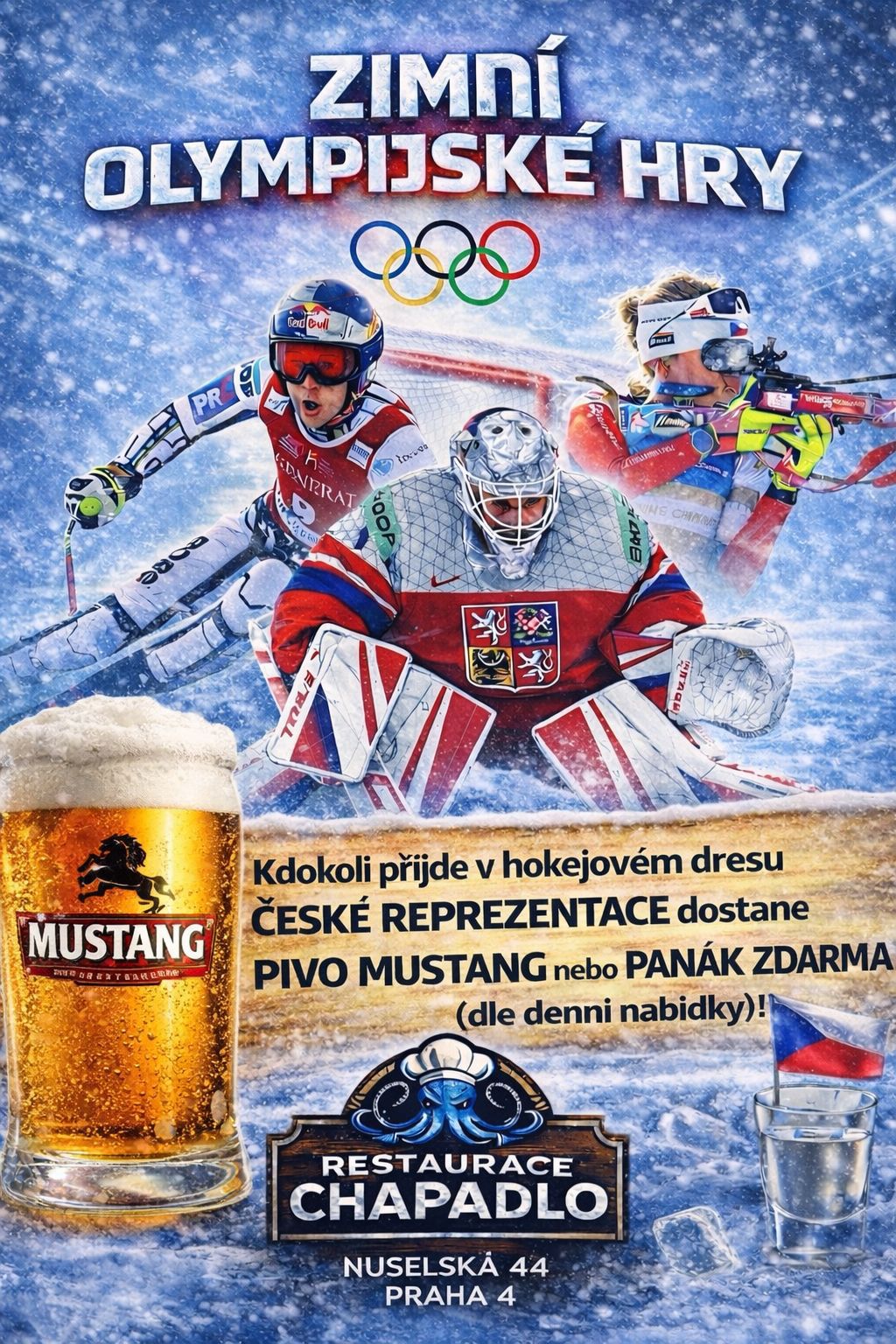 Tip na zimní olympijské hry: fandění v Chapadle se vyplatí. Pokud dorazíte v hokejovém dresu české reprezentace, čeká na vás pivo a panák. Skvělý důvod, proč vytáhnout dres ze skříně, užít si sportovní atmosféru a fandit společně s ostatními. Podrobnosti k akci najdete tady.